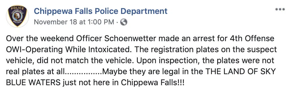 And gets busted for his FOURTH OWI(in Wisconsin they call them Operating While Intoxicated)! This story had to happen in Wisconsin. Every time a list about drunkest cities comes out Wisconsin constantly lands several cities on that list. The last time I saw a list of “20 Drunkest Cities,” Wisconsin had 12 cities on there! So my man in America’s Drunkland apparently hasn’t heard of Uber/Lyft/taxis. That’s what they’re there for…to drive your drunk butt home! Safer and cheaper than driving drunk yourself…that is unless your driver is drunk himself. So, this guy gets pulled over in Chippewa Falls(I’ll tell ya why that sounds familiar later)for swerving across the road. Upon examination the officer realizes not only are the plates not registered to the vehicle they are on, they aren’t even real license plates! The guy made them out of Hamm’s beer boxes!