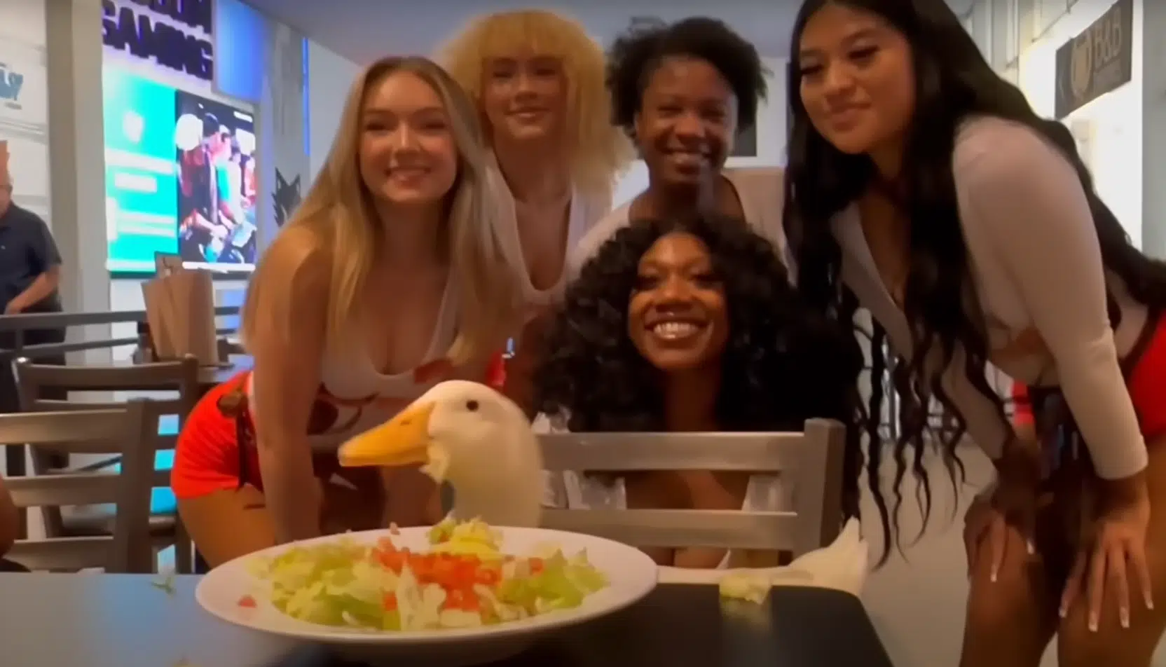This is Wrinkle The Duck, and he gets out more than any of us do. On this YouTube Channel, properly called “seDUCKtive,” his owner takes him everywhere. In-N-Out, GameStop, Wal-Mart, the movie theater, KFC… He has a more active social life than us! But on one of his more recent excursions, he went to Hooters. And as you can imagine, HE LOVED IT.