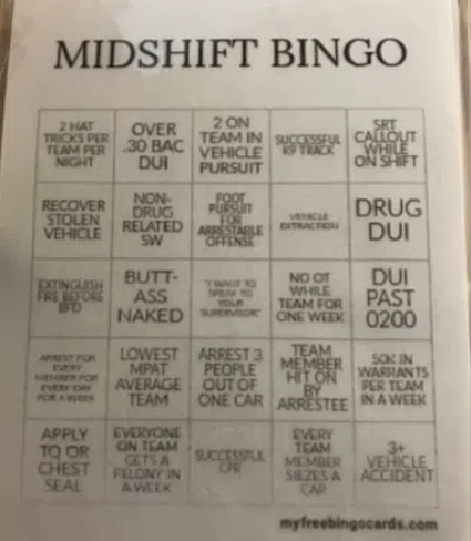 Thirteen officers were caught scoring points for arrests, warrants, and beating firefighters to scenes. Turns out, Bingo isn’t a valid policing strategy, and now they’re all one bad square away from “disciplinary action” blackout.