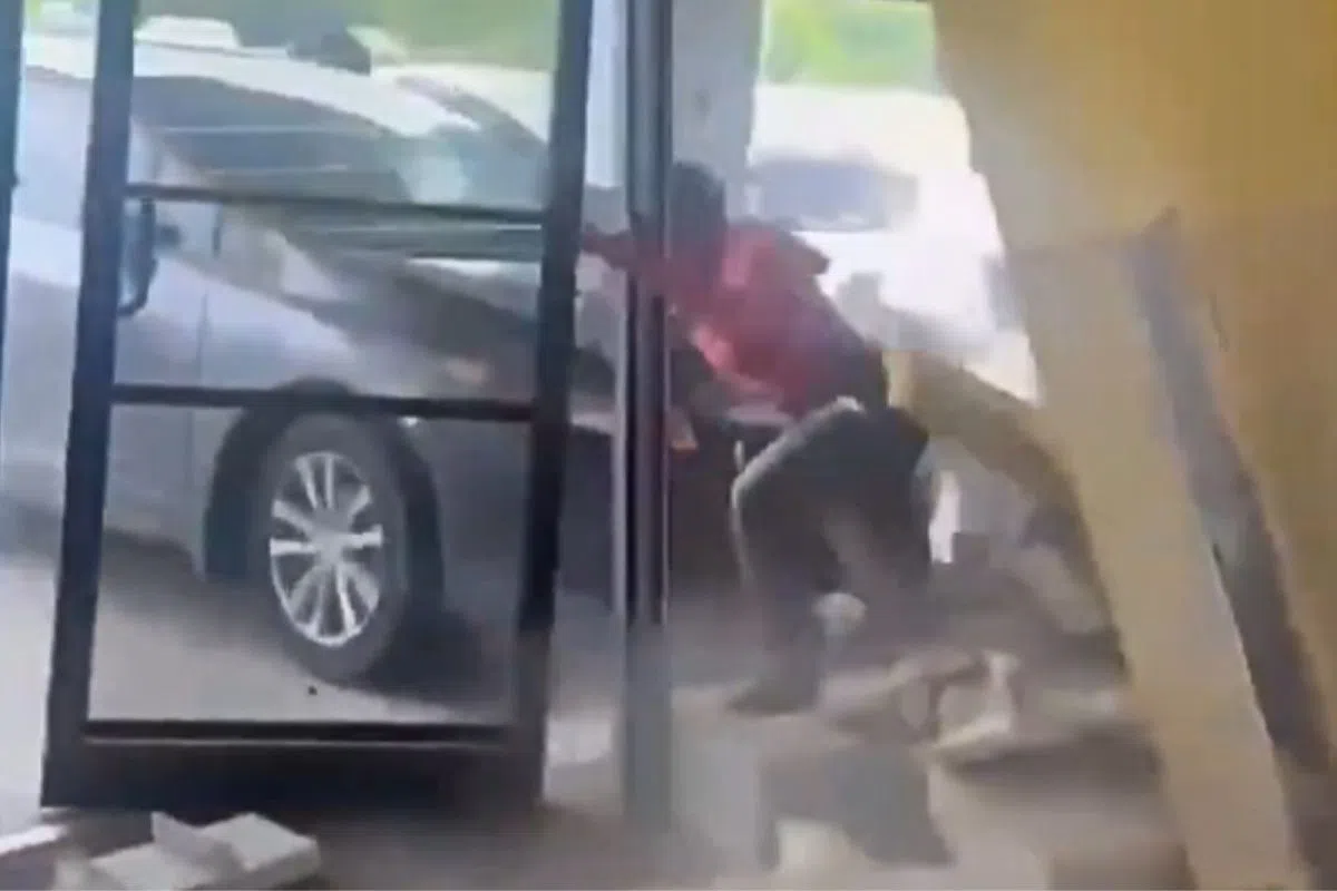 You know how the Kool-Aid man is known for bursting through walls saying “OH YEAH.” This is kind of like that except the man is a young woman, a car is what blasted her through the wall and left everyone, especially Dollar Tree employees, saying “OH NO!”
