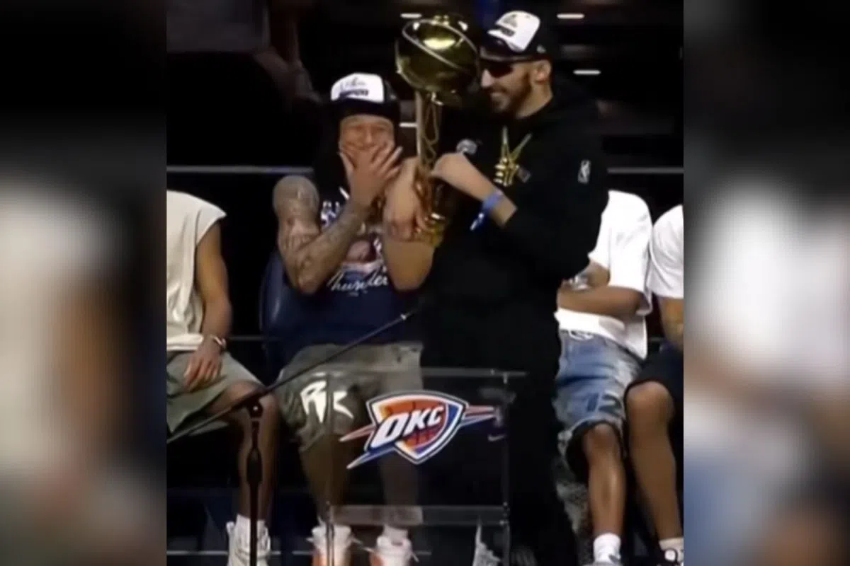 Yesterday the OKC Thunder partied in the streets of Oklahoma City as they celebrated their NBA Championship win and showed off the Larry O’Brien Trophy and boy, did the players really party.