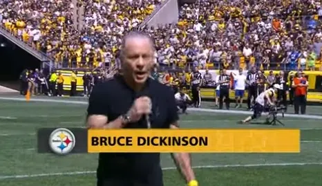 Yesterday before the Pittsburgh Steelers/ Seattle Seahawks football game, Iron Maiden’s Bruce Dickinson sand the national anthem.