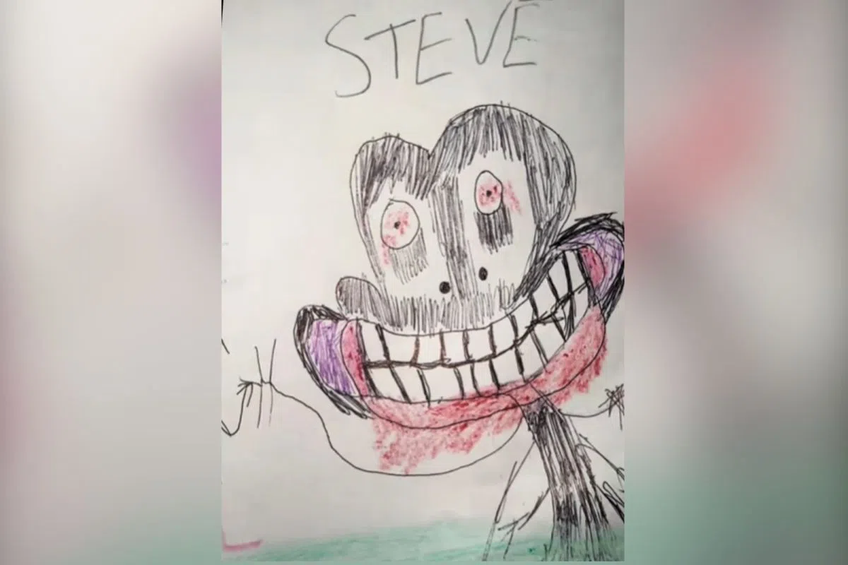 For this little one, she was showing her brother a family picture she had drawn of their parents, her, and her best friend “Steve” who honestly just looks like a demon.