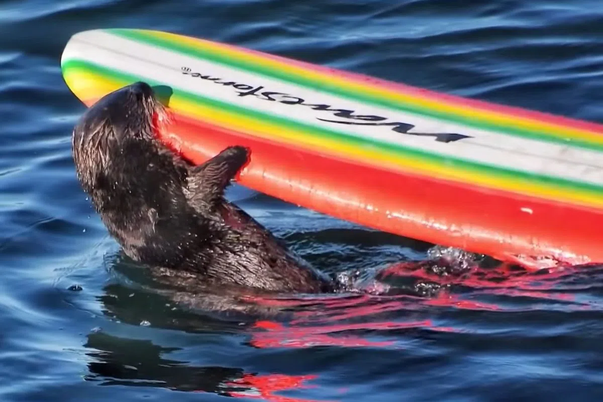 In Santa Cruz, one mischievous sea otter decided it was time to hang ten (or however many toes otters have) by stealing a surfer’s board right out from under her! Isabella Orduna says the furry felon gave her foot “an exploratory nip”, caught a wave, and refused to give the board back for 20 minutes. Another young surfer says his board was otter-taken when the critter caught hold of the leg leash of the board and pulled it back.