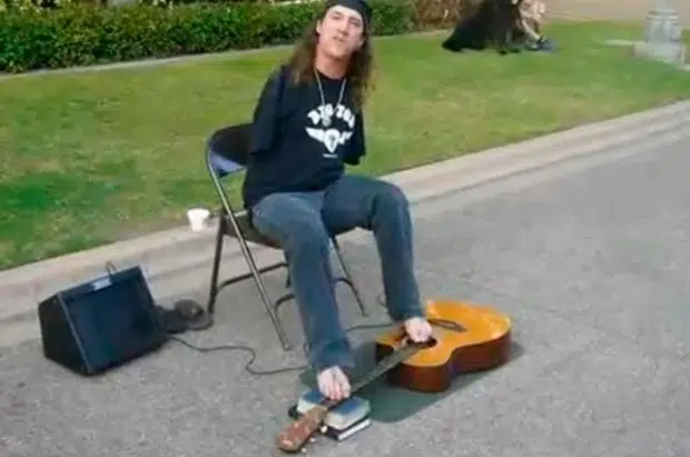 THIS GUY! His name is Mark Goffeney. He was born without arms, and he can still rip on a guitar with his toes. Alternative Press has the whole story covered, but in the mean time, see the videos.