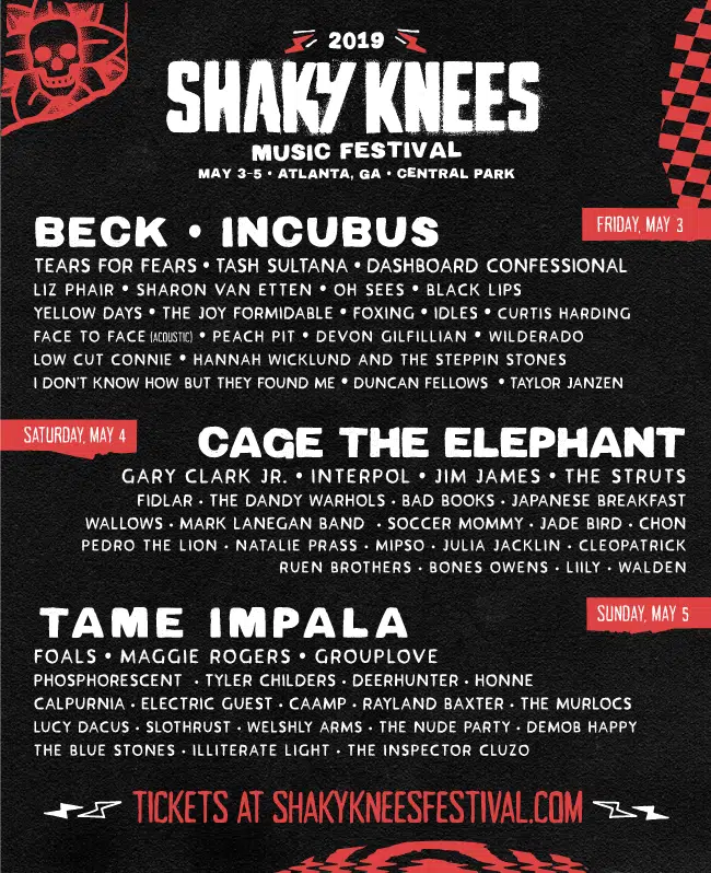 (Atlanta, GA - January 23) Shaky Knees Music Festival has announced its Lineup by Day, and 1-Day General Admission, VIP and Platinum Tickets will go on sale tomorrow, January 24 at 10am ET.