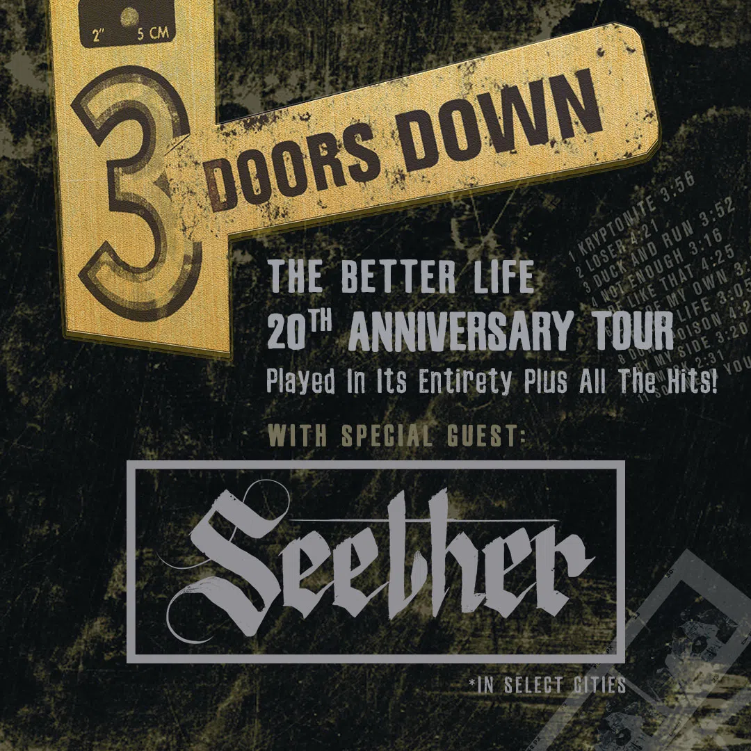 3 Doors Down will bring The Better Life 20th Anniversary Tour to Nashville on Saturday, September 25th at Ascend Amphitheater, along with special guest Seether. Tickets on sale Friday, June 4th at 10am!