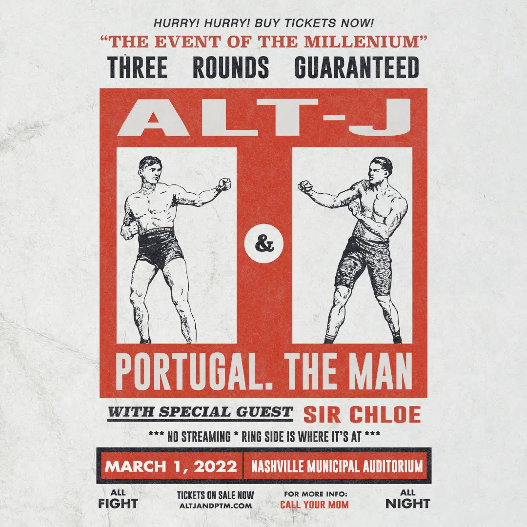 alt-J and Portugal. The Man will be in Nashville on Tuesday, March 1st at Municipal Auditorium. Tickets on sale NOW! More info at NashvilleAuditorium.com.