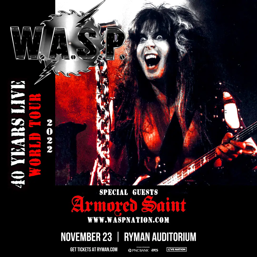 W.A.S.P. and Armored Saint will be at The Ryman on Wednesday, November 23rd. Tickets on sale Friday, January 14th at 10am. More info at Ryman.com!
