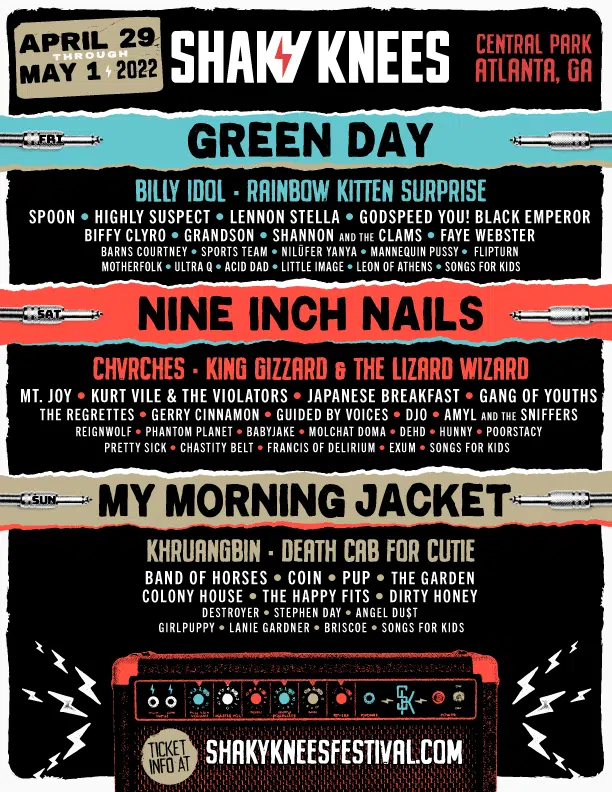 Green Day, Nine Inch Nails, My Morning Jacket, Highly Suspect, Death Cab For Cutie, and MORE make up the 2022 lineup for Shaky Knees Music Festival, April 29th through May 1st at Central Park in Atlanta! More info at ShakyKneesFestival.com.