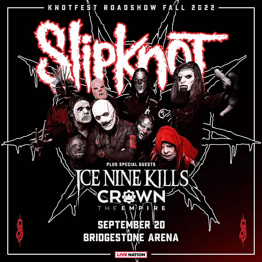 The KNOTFEST ROADSHOW 2022 is coming to Bridgestone Arena, Tuesday, September 20th, featuring Slipknot. Ice Nine Kills, and Crown The Empire. Tickets on sale Friday, June 17th at 10am. More info at BridgestoneArena.com.