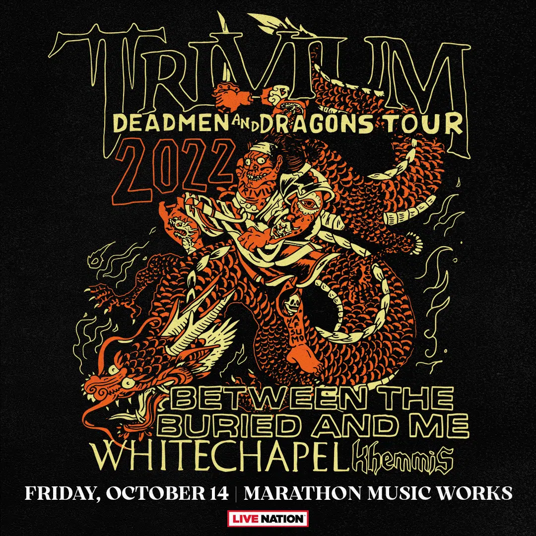 Trivium will be at Marathon Music Works for the Deadmen and Dragons Tour with Between The Buried And Me, Whitechapel, and Khemmis, Friday, October 14th. Tickets on sale NOW! More info at MarathonMusicWorks.com.
