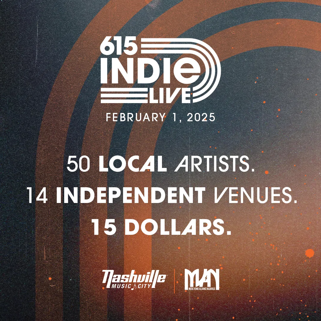 Celebrate Nashville’s independent venues and artists with 615 INDIE LIVE on February 1st. Experience over 50 local artists across 14 independent venues for just $15. Discover the full list of bands and venues at VISITMUSICCITY.COM. Tickets are now available, so grab yours today to support Nashville’s independent venues and artists! Special thanks to partners Country Music Association, W-M-E, Nashville International Airport, and Jack Daniel’s. For more information and to purchase tickets, go to VISITMUSICCITY.COM. 615 Indie Live supports Music Venue Alliance Nashville.