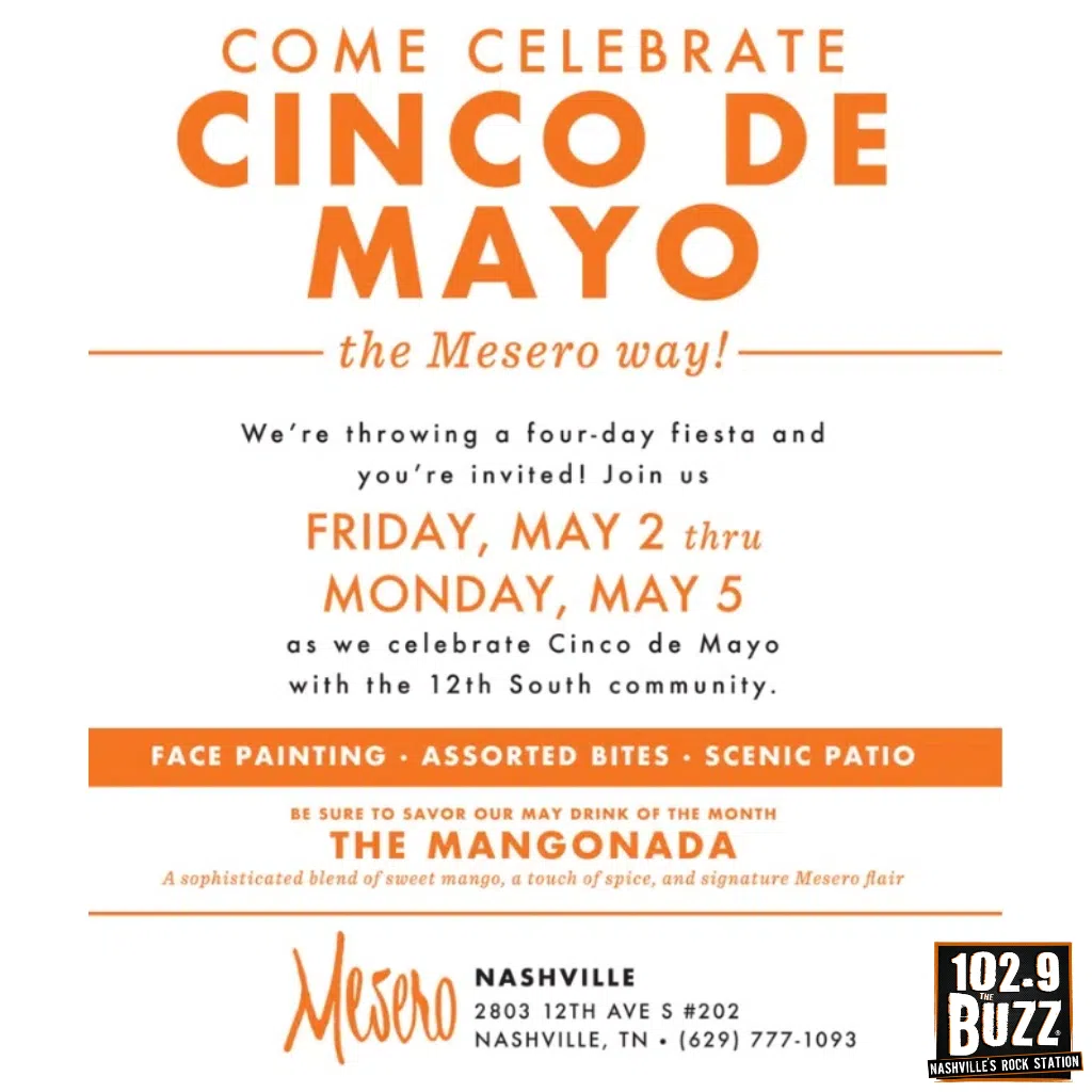 This Cinco de Mayo, Hayley from 102.9 The Buzz is live at Mesero in 12 South from 3 to 6pm! Win tickets, score prizes, and enjoy Don Julio drink specials during the party.