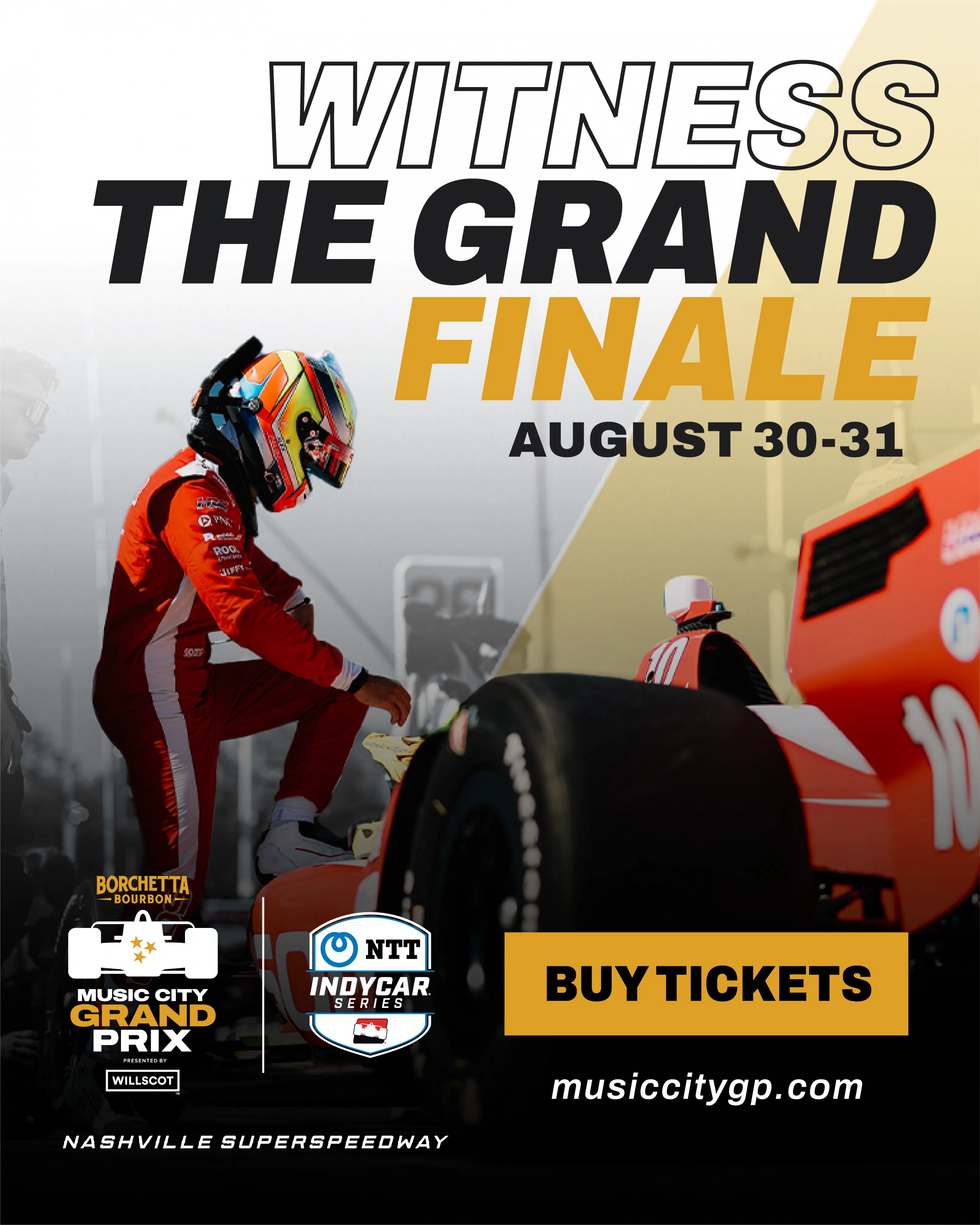 Witness the season finale championship race of the Borchetta Bourbon Music City Grand Prix. Nashville Superspeedway is where champions are made, and this is your chance to see it all unfold.