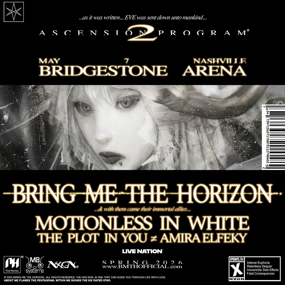 Bring Me The Horizon will be at Bridgestone Arena on Thursday, May 7th with special guests Motionless In White, The Plot In You, and Amira Elfeky. Tickets on sale Friday, October 10th at 10am. More info at BridgestoneArena.com.