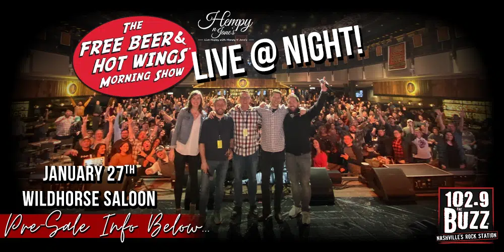 Free Beer & Hot Wings are back with ‘Live @ Night’ on Friday, January 27th at Wildhorse Saloon! Thanks for being a member of Buzz Nation – Below is an exclusive pre-sale offer for the show…
